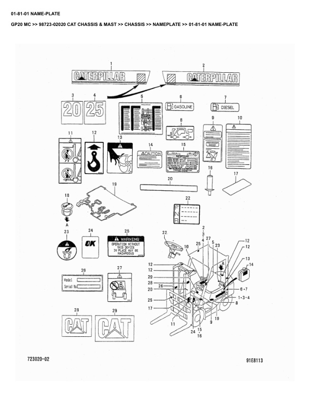 Caterpillar GP20 MC Parts Manual 98723-02020