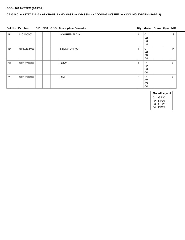Caterpillar GP20 MC Parts Manual 98727-23930