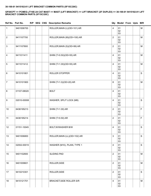 - 104. _30-100-01 9415182-01 LIFT BRACKET COMMON PARTS (5F15C_20C) Spare Parts Catalog.pdf