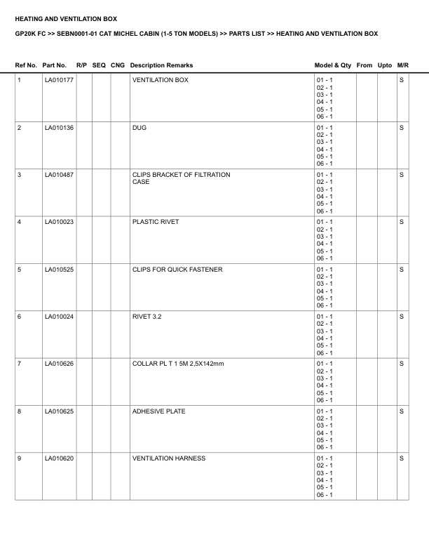 - Information: CAT MICHEL CABIN (1-5 TON MODELS)