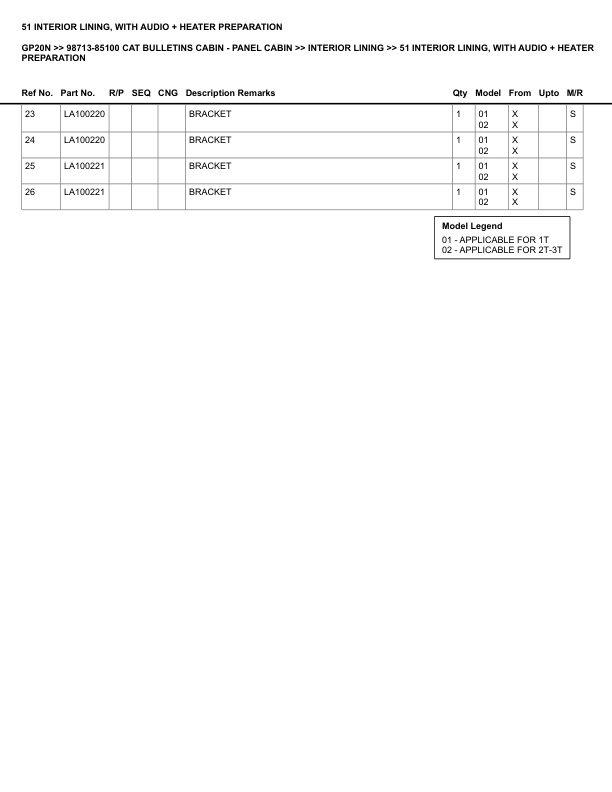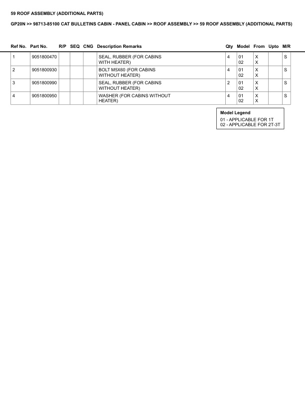 • Information: CAT BULLETINS CABIN – PANEL CABIN