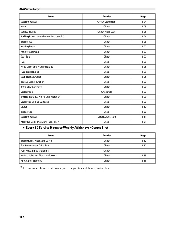 - 2.12.5. Every 50 Service Hours or Weekly, Whichever Comes First