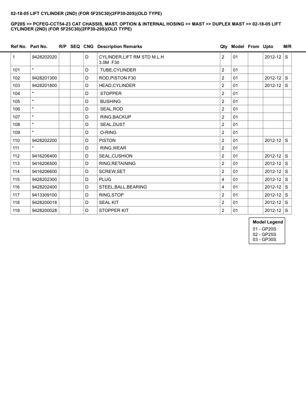 Caterpillar GP20S Parts Manual PCFEG-CCT54-23