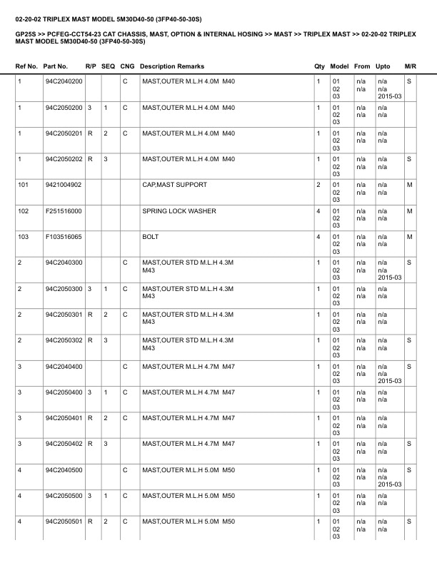 Caterpillar GP25S Parts Manual PCFEG-CCT54-23
