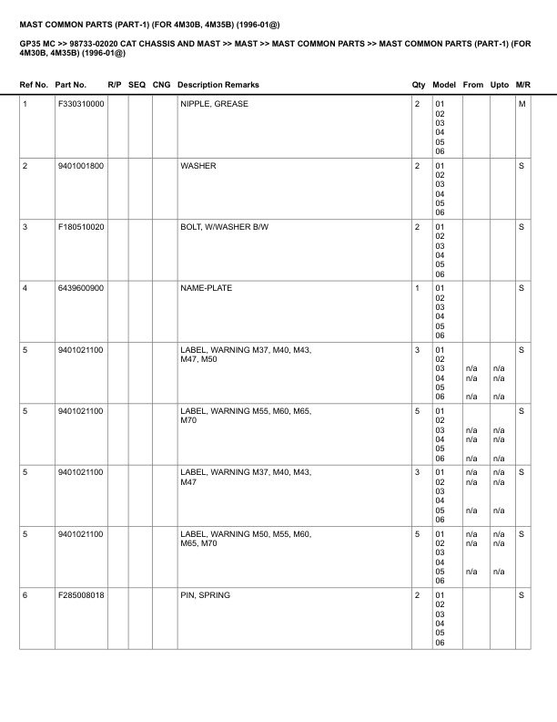 • 61. _MAST COMMON PARTS (PART-1) (FOR 4M30B, 4M35B) (1996-01) Spare Parts Catalog.pdf