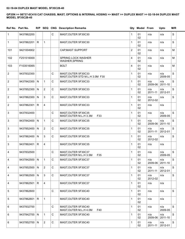 - Information: CAT CHASSIS, MAST, OPTIONS – INTERNAL HOSING