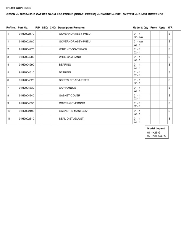 - Information: CAT K25 GAS – LPG ENGINE (NON-ELECTRIC)