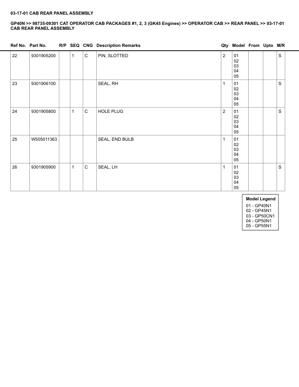 Caterpillar GP40N Parts Manual 98735-09301 - Image 4