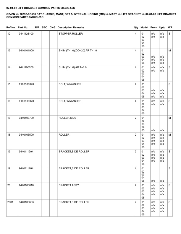 Caterpillar GP20K MC Parts Manual SEBN0001-01