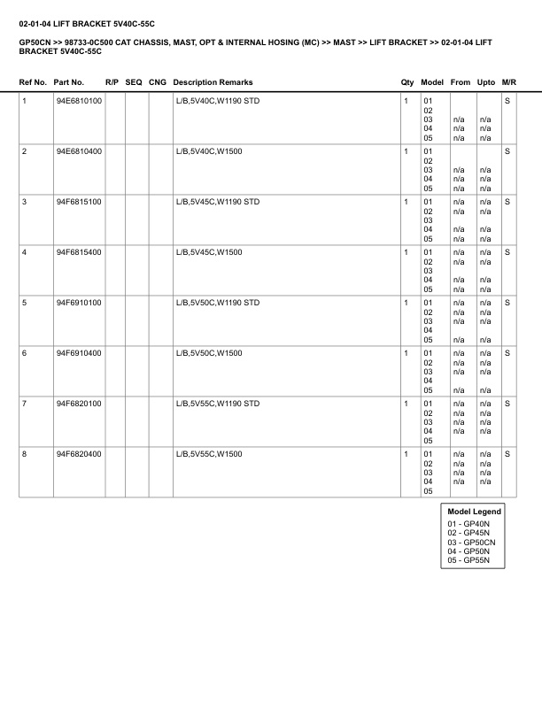 Caterpillar GP50CN Parts Manual 98733-0C500