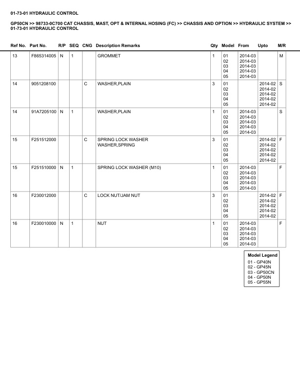 Caterpillar GP50CN Parts Manual 98733-0C700