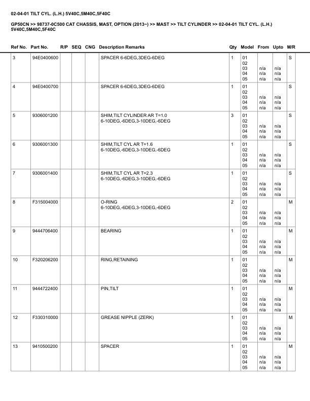 - Information: CAT CHASSIS, MAST, OPTION (2013-)