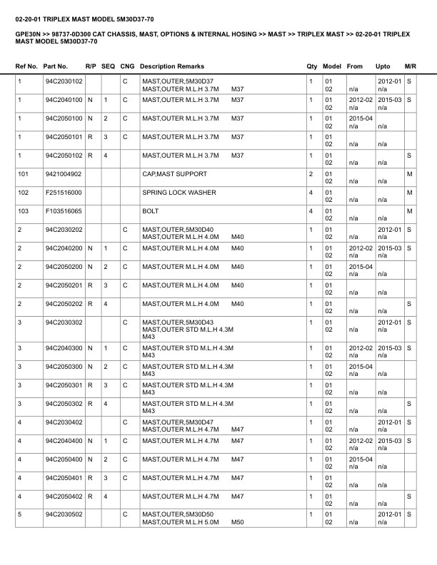 - Information: CAT CHASSIS, MAST, OPTIONS – INTERNAL HOSING