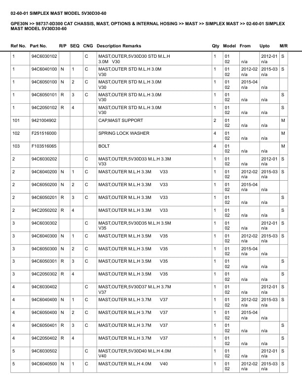 Caterpillar GPE30N Parts Manual 98737-0D300