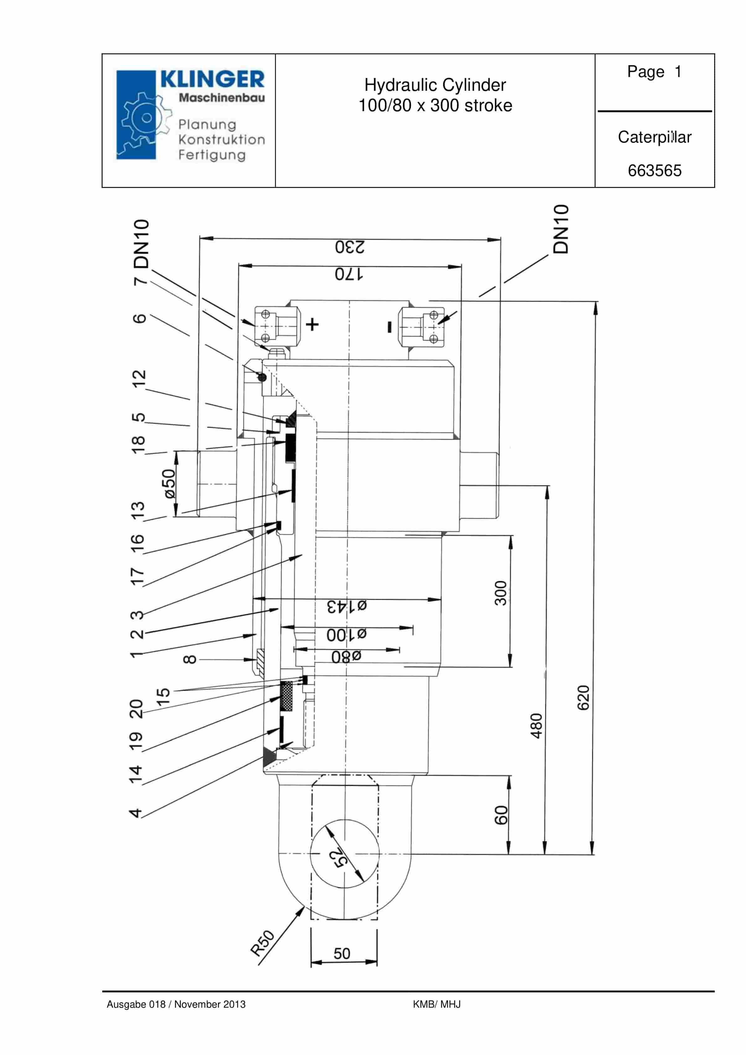 • Hydraulic Cylinder 100-80 x 300 Stroke