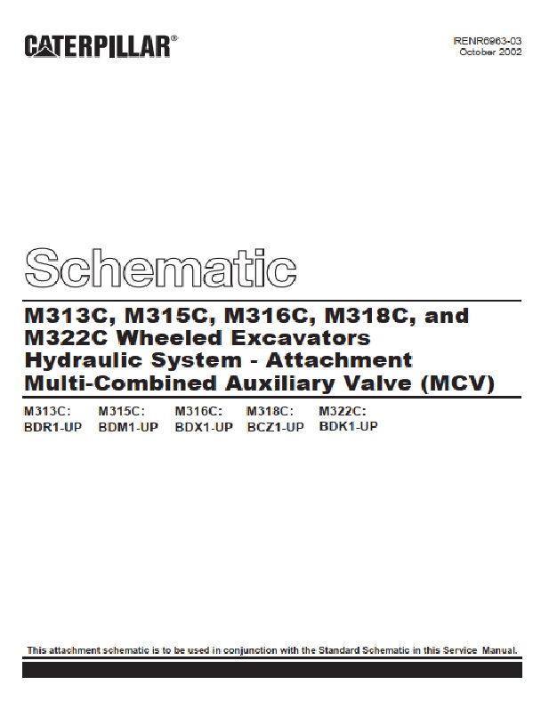 • M313C, M315C, M316C, M318C, M322C Wheeled Excavators Hydraulic System – Attachment Multi-Combined Auxiliary Valve (MCV)