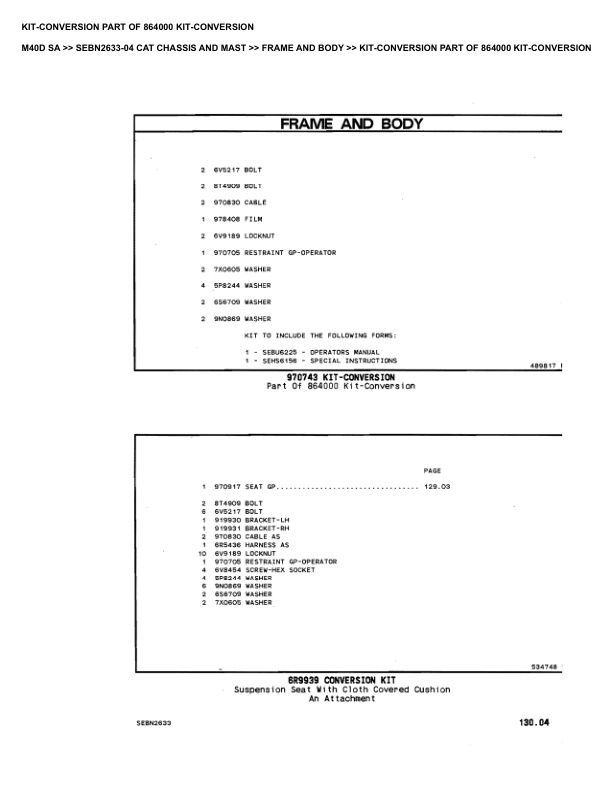 Caterpillar M40D SA Parts Manual SEBN2633-04