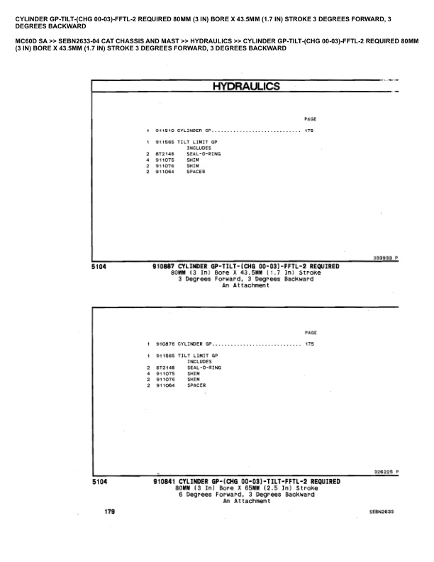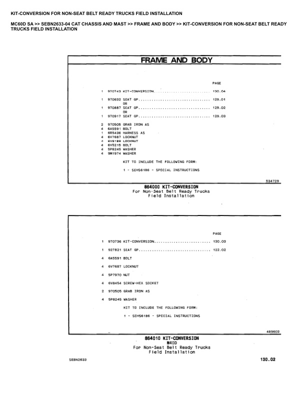 Caterpillar MC60D SA Parts Manual SEBN2633-04