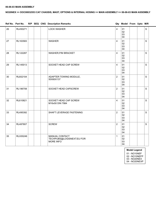 Caterpillar NO20NEX Parts Manual DOC00032553