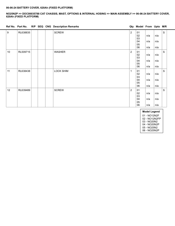Caterpillar NO25N2P Parts Manual DOC00035788