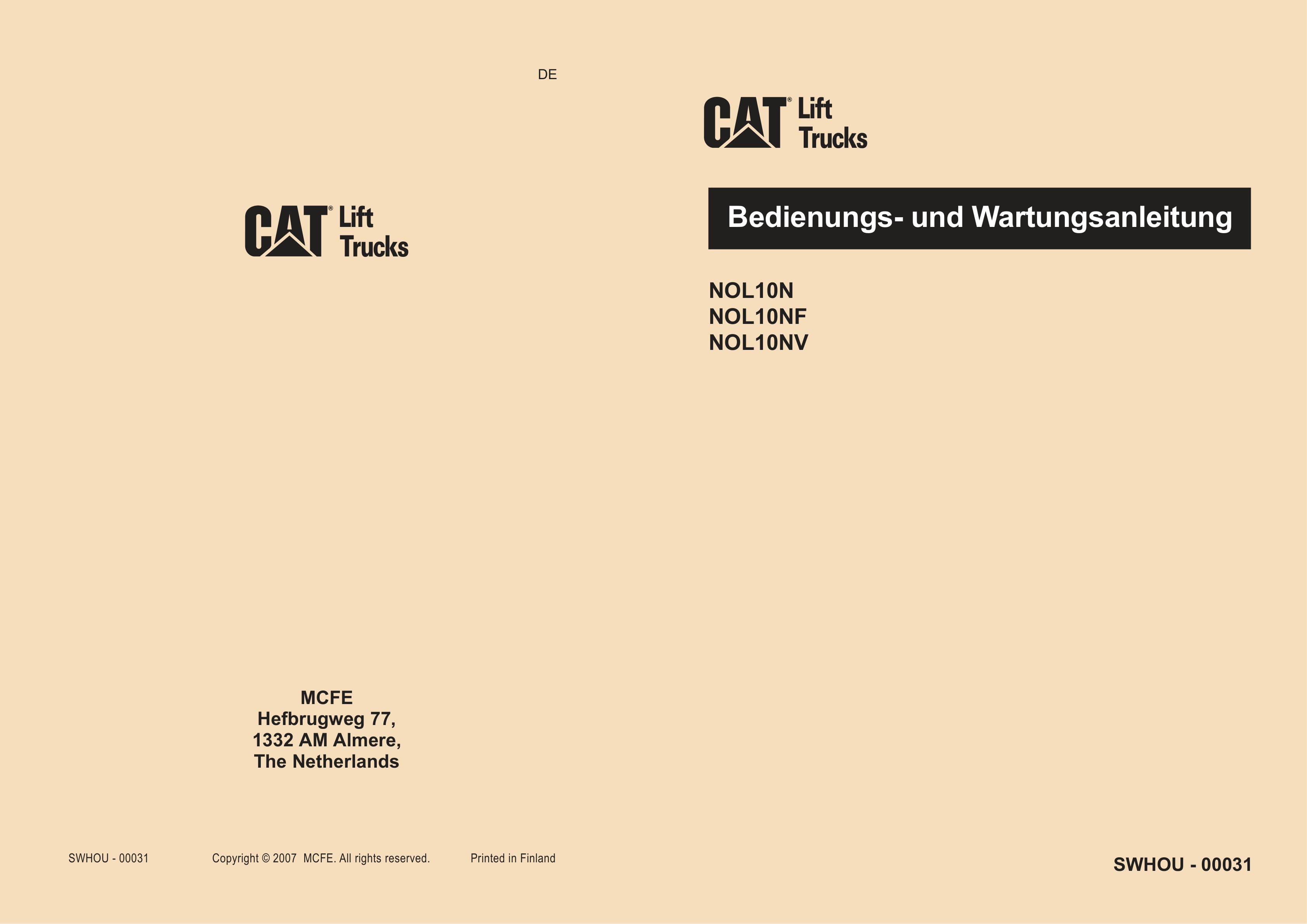 Caterpillar NO20NE, NO20NEP, NO10NE, NO10NEFP, NO20NEX, NO20NEXP Operation and Maintenance Manual SWHOU-00032 DE