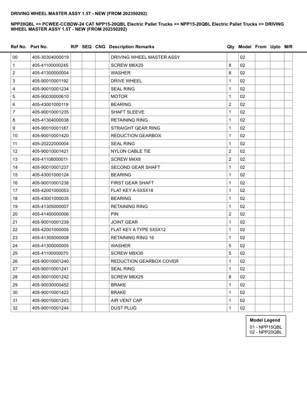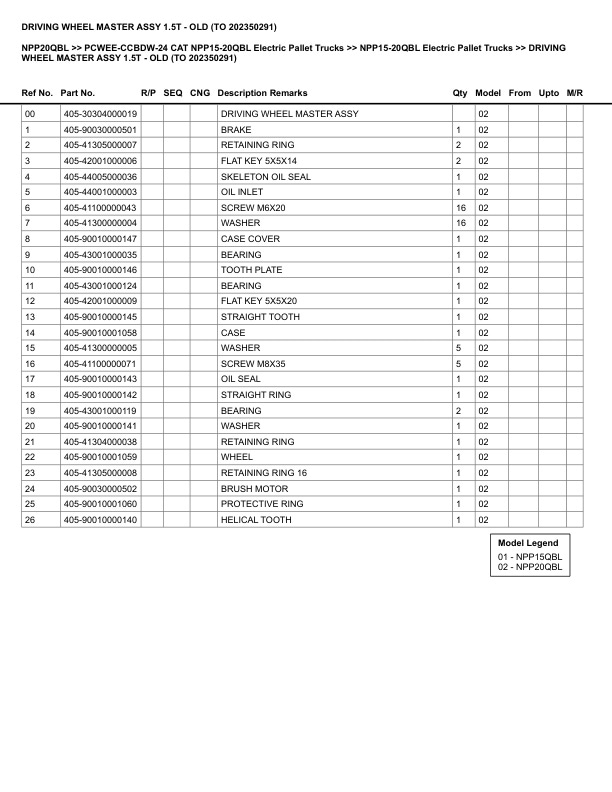 Caterpillar NPP20QBL Parts Manual PCWEE-CCBDW-24