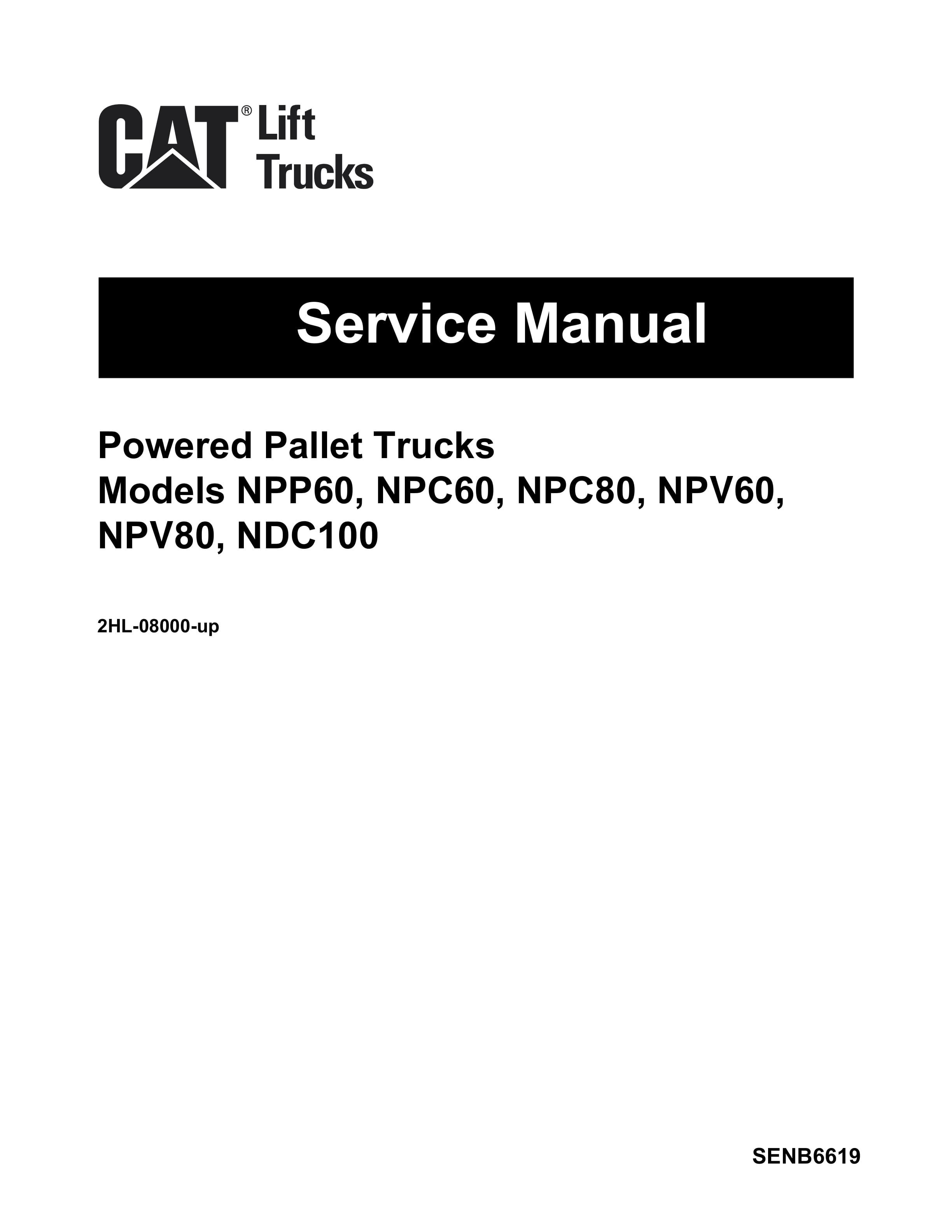 Caterpillar NPP60, NPV60, NPV80, NPC60, NPC80, NDC100 Powered Pallet Walkies Service Manual SENB6619