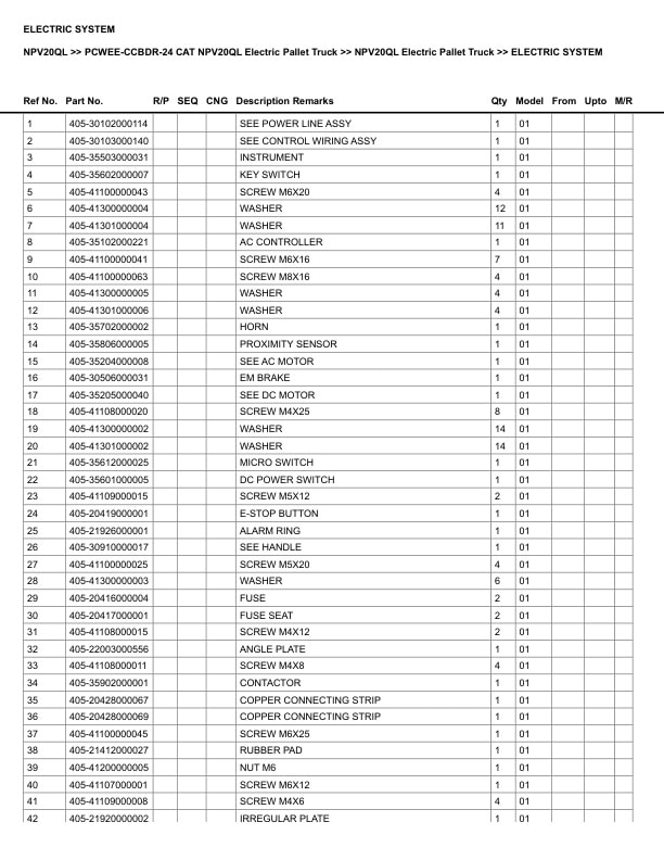 Caterpillar NPV20QL Parts Manual PCWEE-CCBDR-24