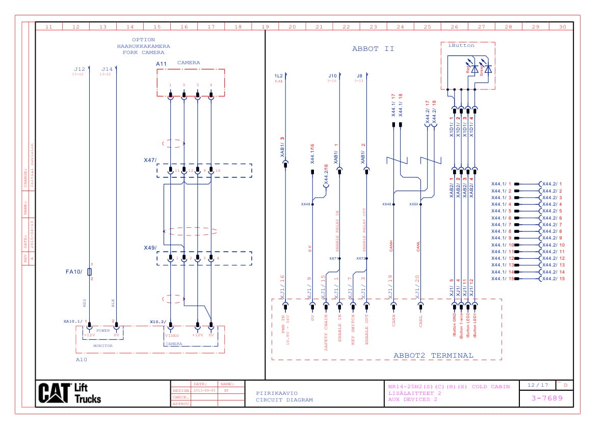 Caterpillar NR14-25N2(S)(C)(H)(X) Cold Cabin Electrical Diagrams TS1380000-D