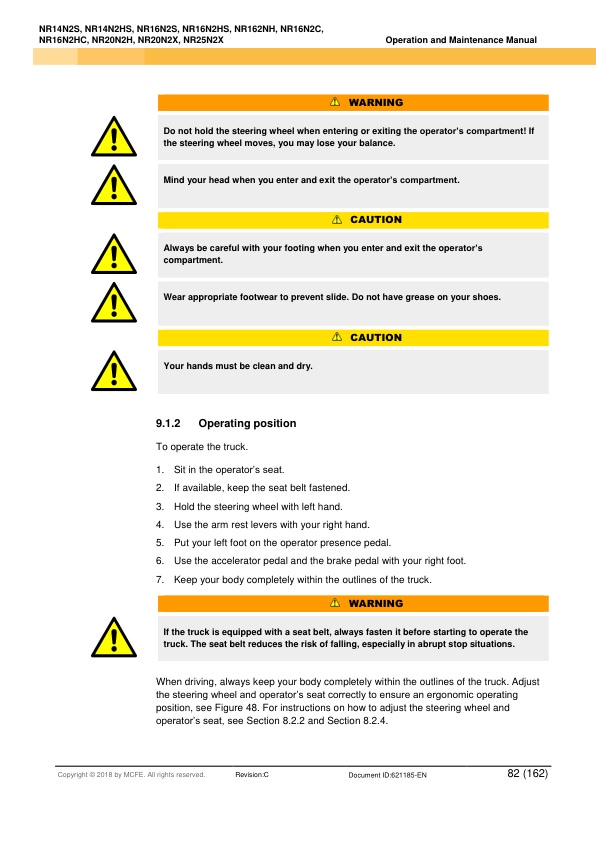 Caterpillar NR14N2S to NR25N2X Operation and Maintenance Manual 621185 EN-C