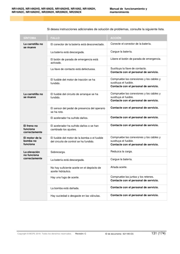 Caterpillar NR14N2S to NR25N2X Operation and Maintenance Manual 621185 ES-C