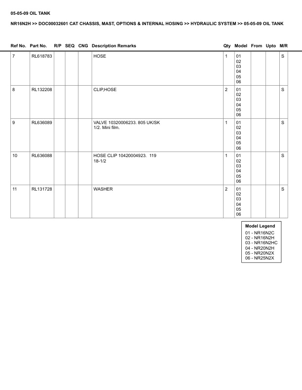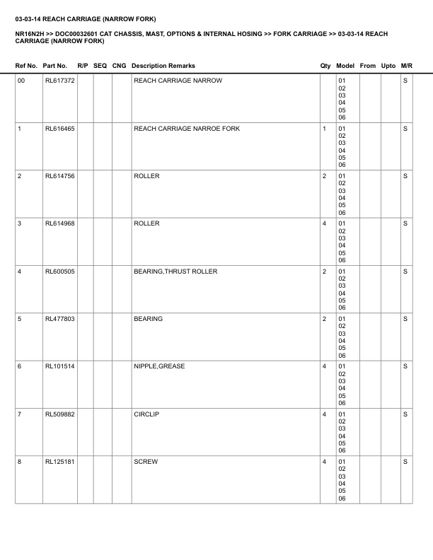 Caterpillar NR16N2H Parts Manual DOC00032601
