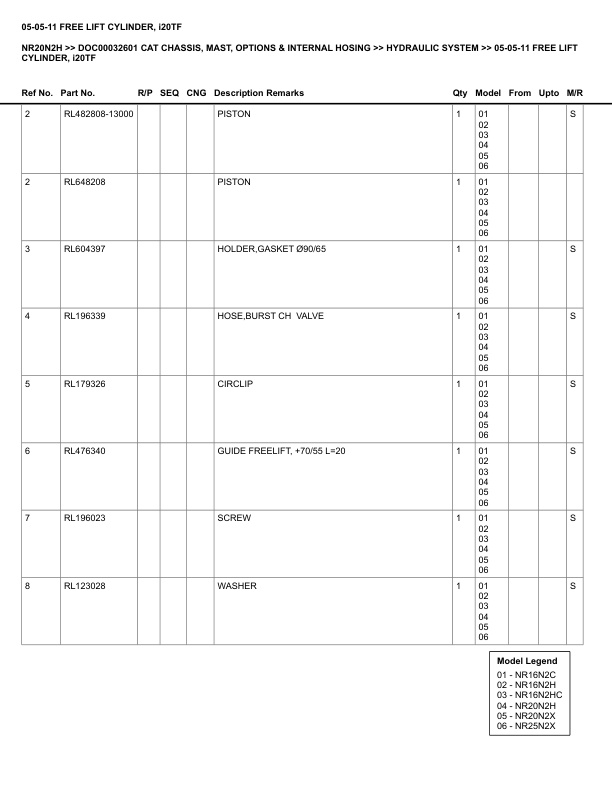 Caterpillar NR20N2H Parts Manual DOC00032601