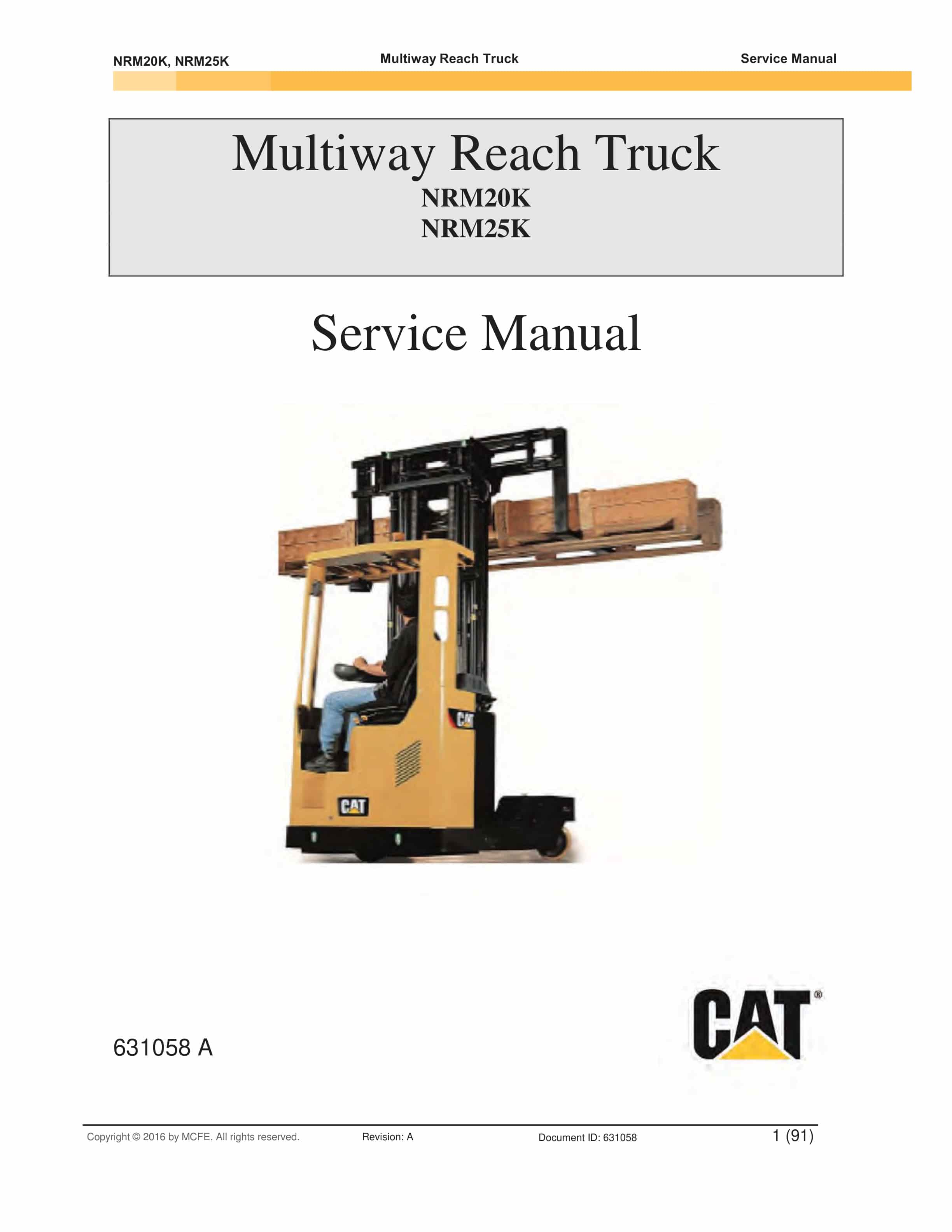 Caterpillar NRM20K, NRM25K Multiway Reach Truck Service Manual 631058