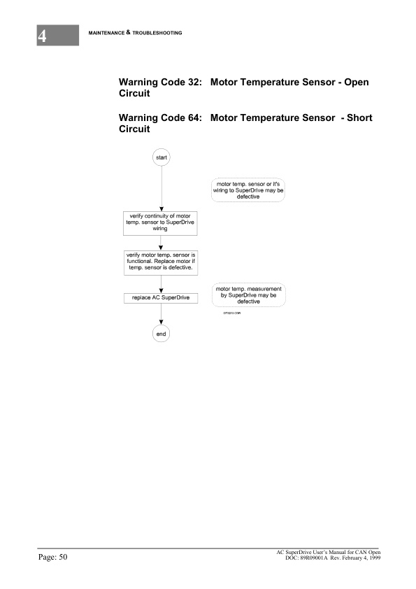 - 7.50. Warning Code 32 Motor Temperature Sensor – Open Circuit