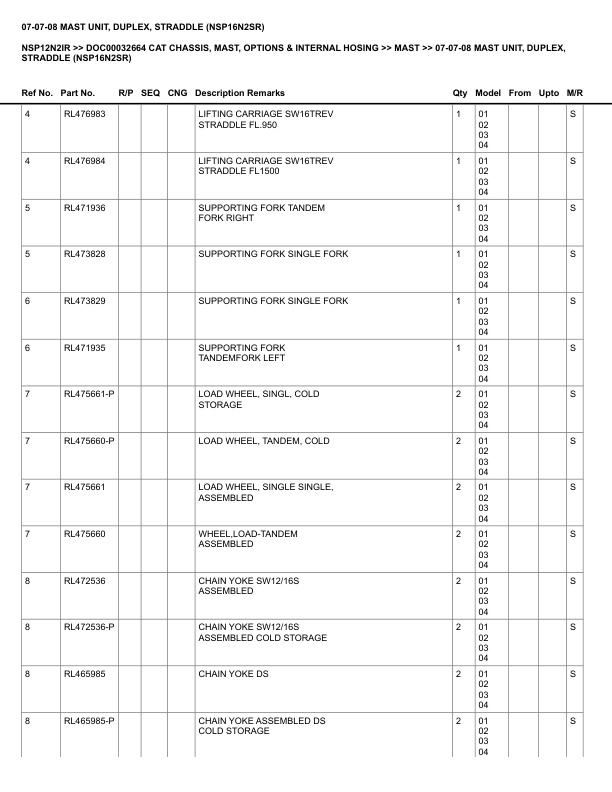 - 83. _07-07-08 MAST UNIT, DUPLEX, STRADDLE (NSP16N2SR) Spare Parts Catalog.pdf