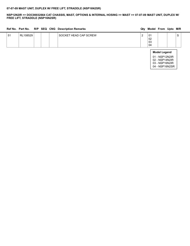 - 84. _07-07-09 MAST UNIT, DUPLEX W_ FREE LIFT, STRADDLE (NSP16N2SR) Spare Parts Catalog.pdf