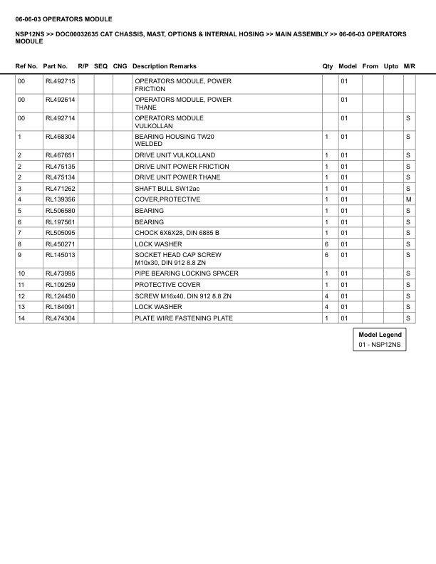 Caterpillar NSP12NS Parts Manual DOC00032635