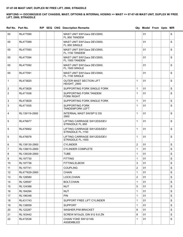 - 61. _07-07-08 MAST UNIT, DUPLEX W_ FREE LIFT, 2900, STRADDLE Spare Parts Catalog.pdf