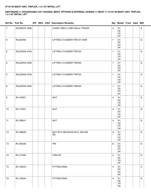 • 93. _07-07-05 MAST UNIT, TRIPLEX, 1.2-1.6T INITIAL LIFT Spare Parts Catalog.pdf