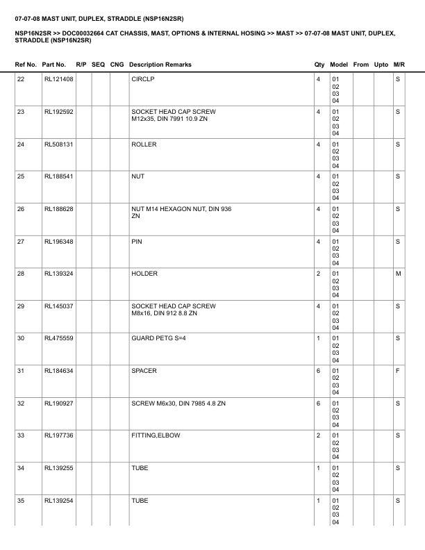 • 95. _07-07-08 MAST UNIT, DUPLEX, STRADDLE (NSP16N2SR) Spare Parts Catalog.pdf