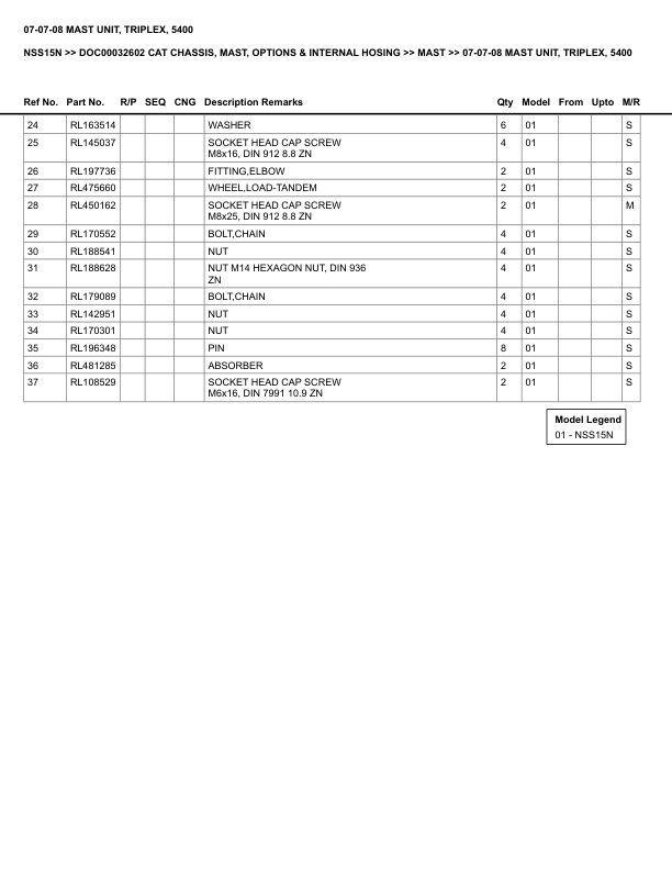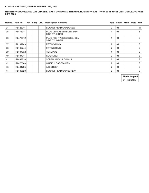 Caterpillar NSS15N Parts Manual DOC00032602