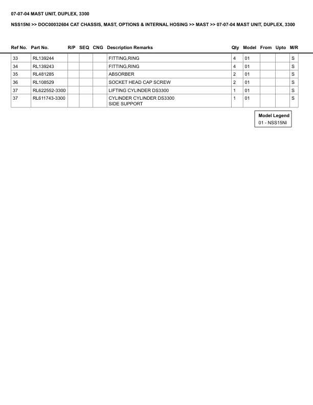 Caterpillar NSS15NI Parts Manual DOC00032604