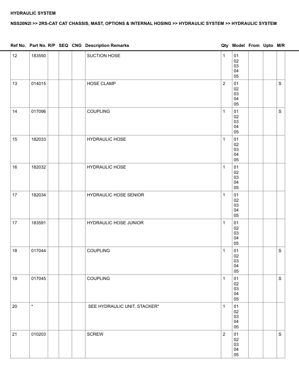 Caterpillar NSS20N2I Parts Manual 2RS-CAT
