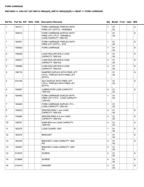 - Information: CAT NSV12-16N3(I)(S)-NSF12-16N3(I)(S)(R)