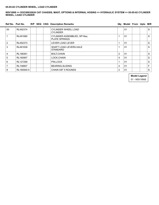Caterpillar NSV16NS Parts Manual DOC00032624