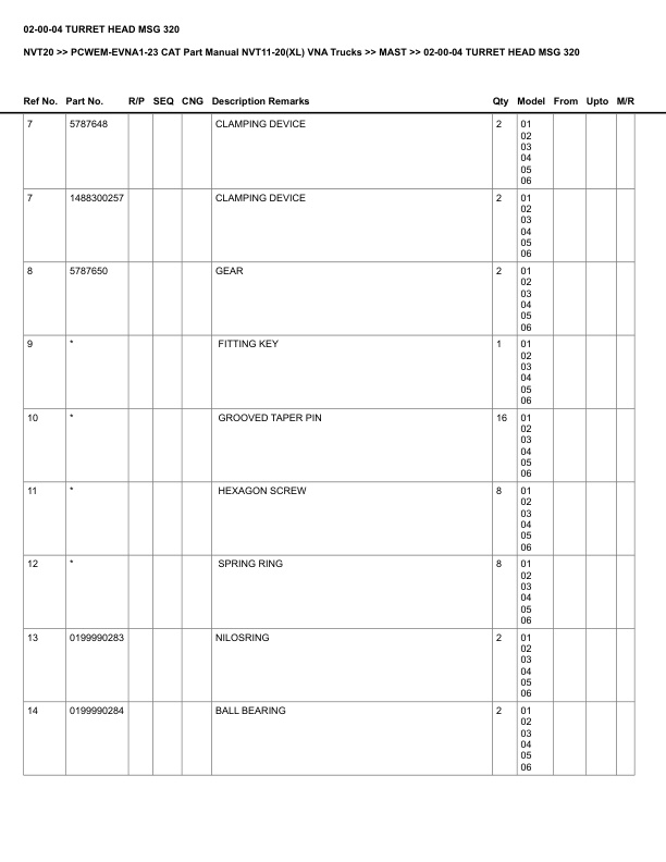 - Information: CAT Part Manual NVT11-20(XL) VNA Trucks