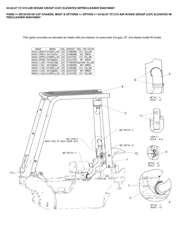 - Information: CAT CHASSIS, MAST – OPTIONS