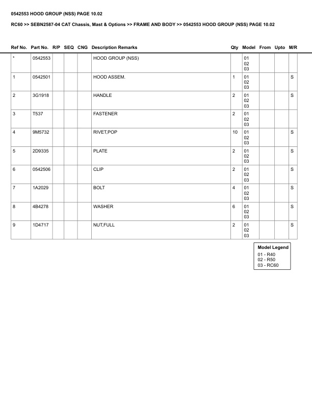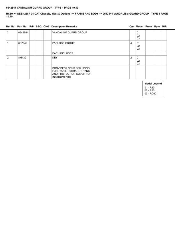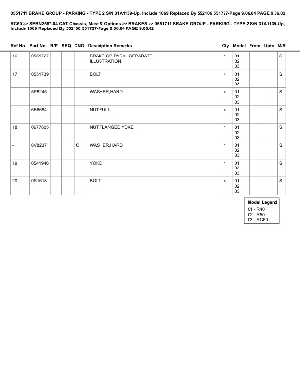 Caterpillar RC60 Parts Manual SEBN2587-04
