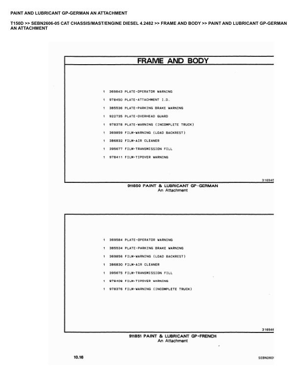 Caterpillar T150D Parts Manual SEBN2606-05